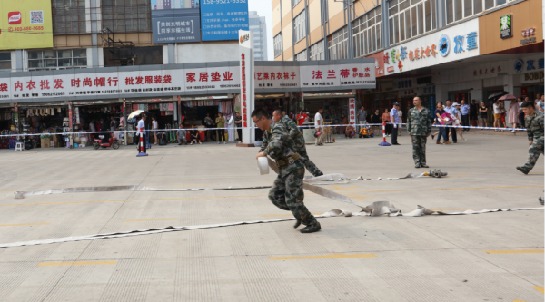 2017年6月28日,宣武集團(tuán)在商貿(mào)城開(kāi)展消防綜合演練活動(dòng)。活動(dòng)中,集團(tuán)經(jīng)濟(jì)護(hù)衛(wèi)隊(duì)、市場(chǎng)業(yè)戶、消防隊(duì)進(jìn)行了擒敵拳、班隊(duì)列、消防水帶連接、滅油盆火4個(gè)項(xiàng)目業(yè)務(wù)技能匯報(bào)表演,并與云龍消防大隊(duì)聯(lián)合進(jìn)行了一次滅火和應(yīng)急疏散演練。通過(guò)演練,進(jìn)一步提升了職工、業(yè)戶的消防安全意識(shí)和應(yīng)急處置能力。房管局系統(tǒng)、云龍區(qū)相關(guān)領(lǐng)導(dǎo)及駐市場(chǎng)工商、稅務(wù)等領(lǐng)導(dǎo)觀摩演練,并對(duì)演練效果給予高度評(píng)價(jià)。